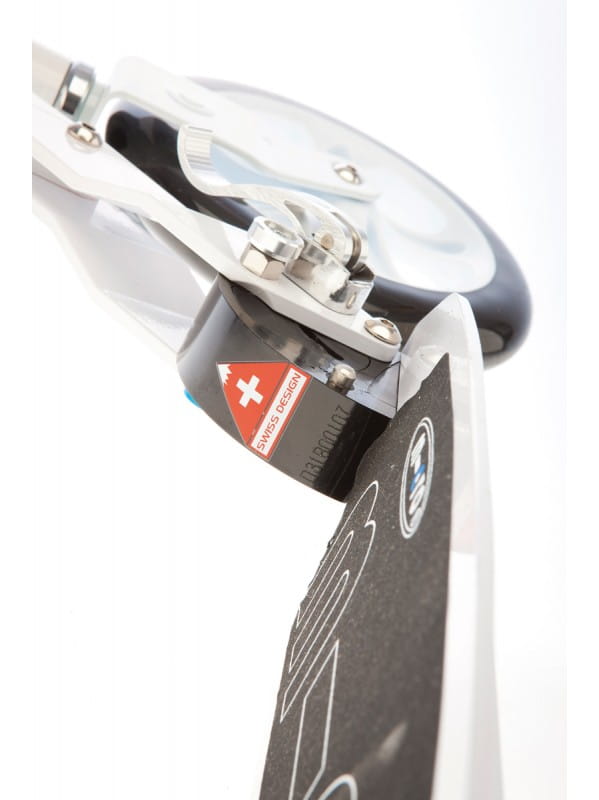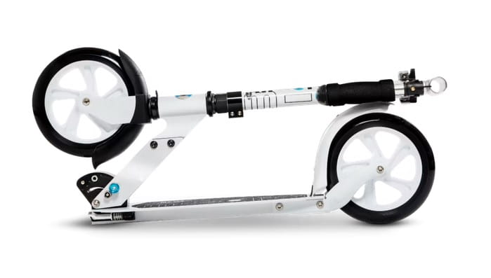 Micro White to godna polecenia hulajnoga wykonana z aluminium ważąca jedynie 4,7 kg. Jeździ się na niej szybko i wygodnie. Wysokość kierownicy można regulować w zakresie od 72 do 103 cm, dzięki czemu każdy użytkownik dopasuje wysokość kierownicy do swojego wzrostu oraz indywidualnych upodobań. Kierownica jest niezwykle wygodna i ułatwia sterowanie hulajnogą podczas jazdy. Hulajnoga ma praktyczny pod względem wielkości oraz nisko zawieszony podest, który świetnie odciąża plecy oraz kręgosłup w czasie jazdy. Jest to niezwykle ważne, zwłaszcza gdy jeździmy szybko. Maksymalne obciążenie hulajnogi wynosi 100 kg. Jak wszystkie hulajnogi dwukołowe Micro, hulajnoga White jest składana, dlatego można się z nią bezproblemowo przemieszczać i przechowywać. Kiedy odstawiamy sprzęt tylko na chwilę, możemy użyć nóżki i postawić w dowolnym miejscu.