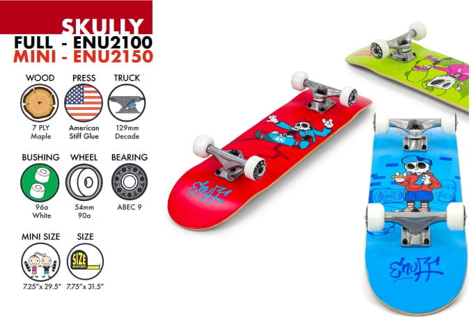 Komplet Enuff Skully to podstawowa deskorolka w dwóch fantastycznych grafikach inspirowanych postaciami. Dostępny w pełnym rozmiarze nadaje się dla wszystkich młodych jeźdźców, którzy chcą uzyskać swój pierwszy właściwy smak tego sportu.