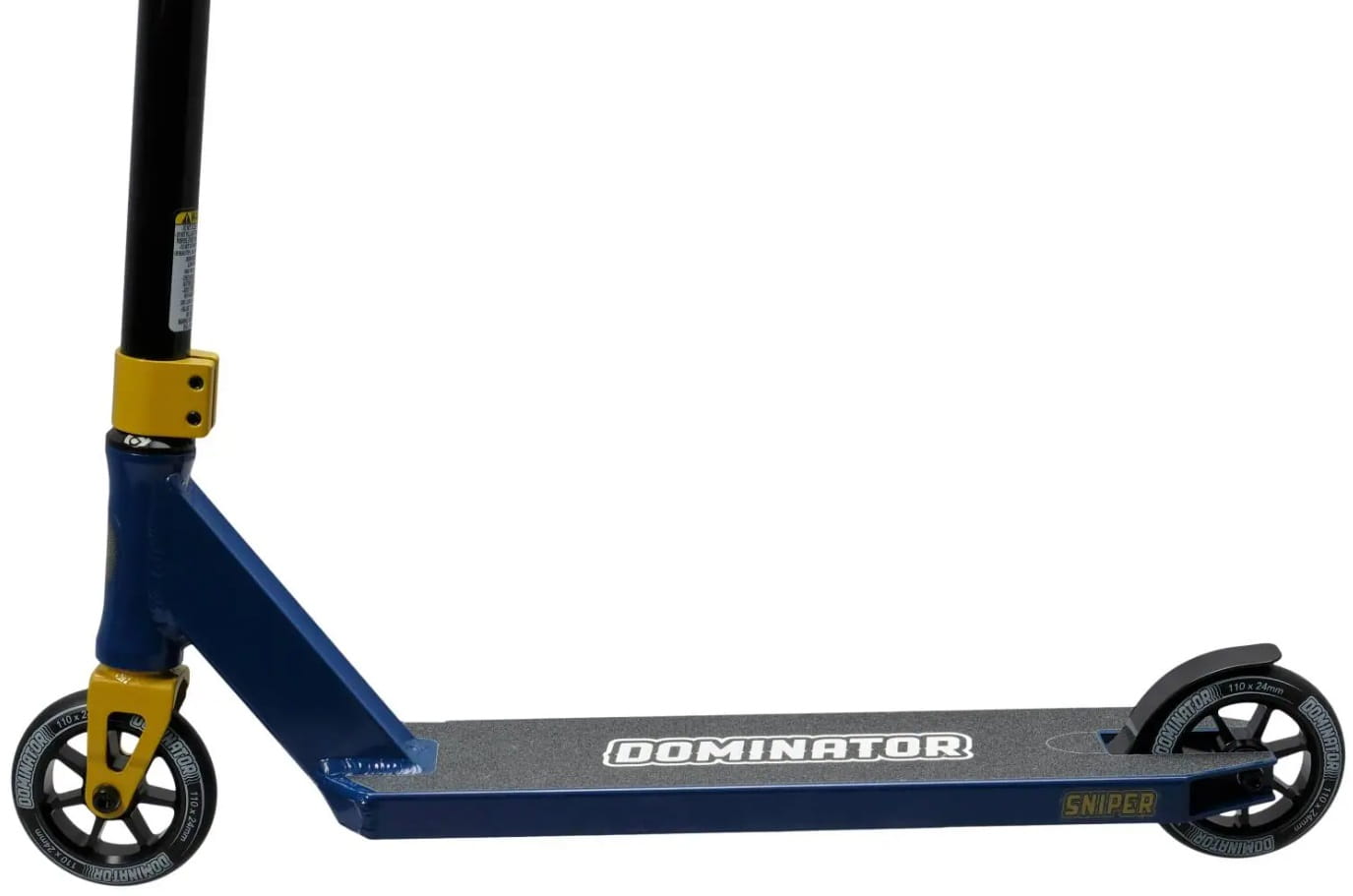 Hulajnogi Dominator zaprojektowane są do jazdy agresywnej, robienia trików i skoków. Dominator jest hulajnogą o ekstremalnej wytrzymałości. Świetna hulajnoga dla początkujących i średnio-zaawansowanych z metalowym, chropowatym kominem i aluminiowymi kółkami zaprojektowanymi do robienia tricków i skoków. Hulajnoga wyposażona została gwintowany system kompresji HIC, który ułatwia dokręcanie części i jest łatwy w utrzymaniu. Dominator jest wyprodukowany przez District i Addict w Holandii.