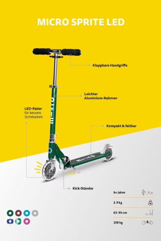 Dzięki wyjątkowej szwajcarskiej konstrukcji i niezawodnej jakości, Micro Sprite jest najlepszym wstępem do hulajnóg dwukołowych.
