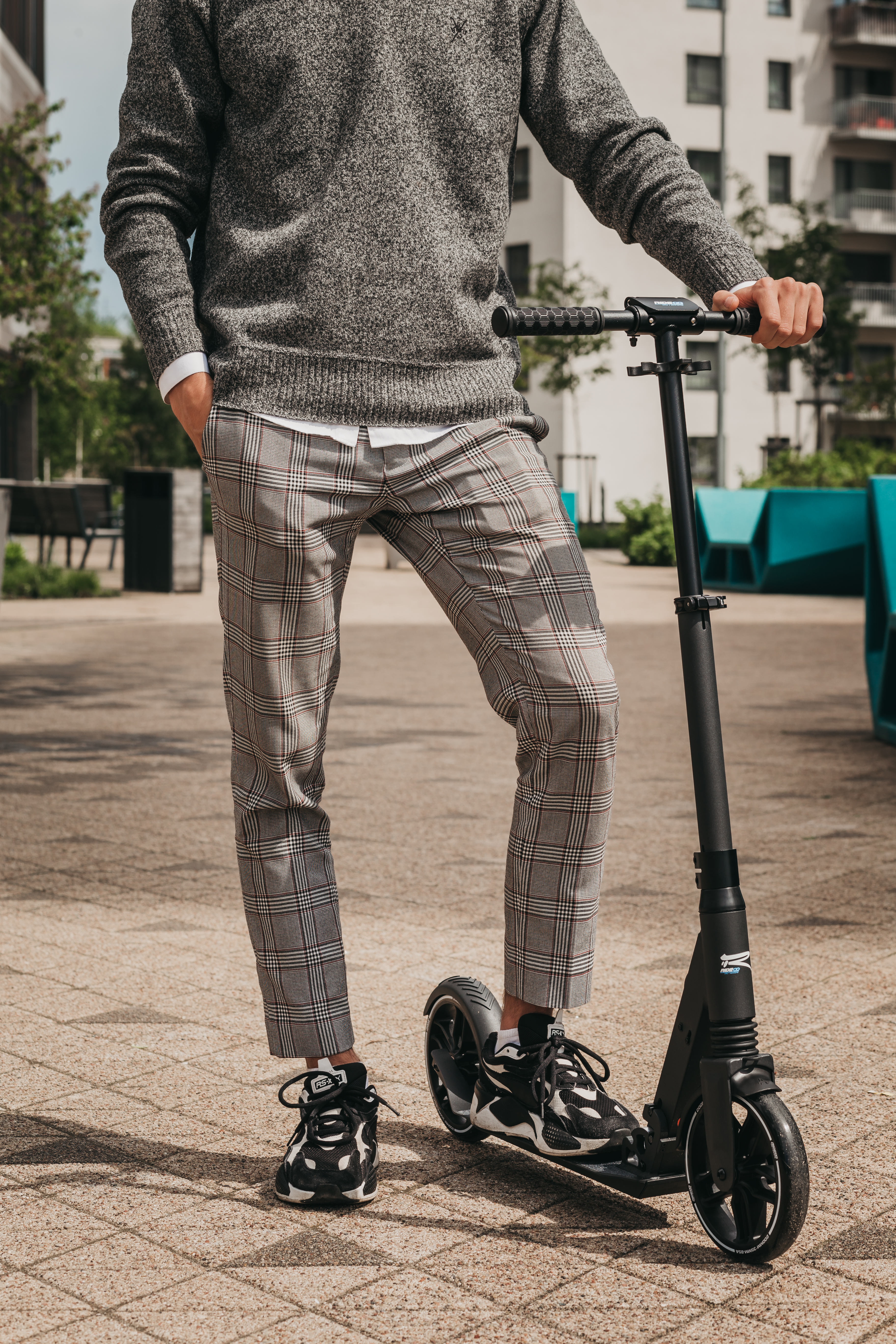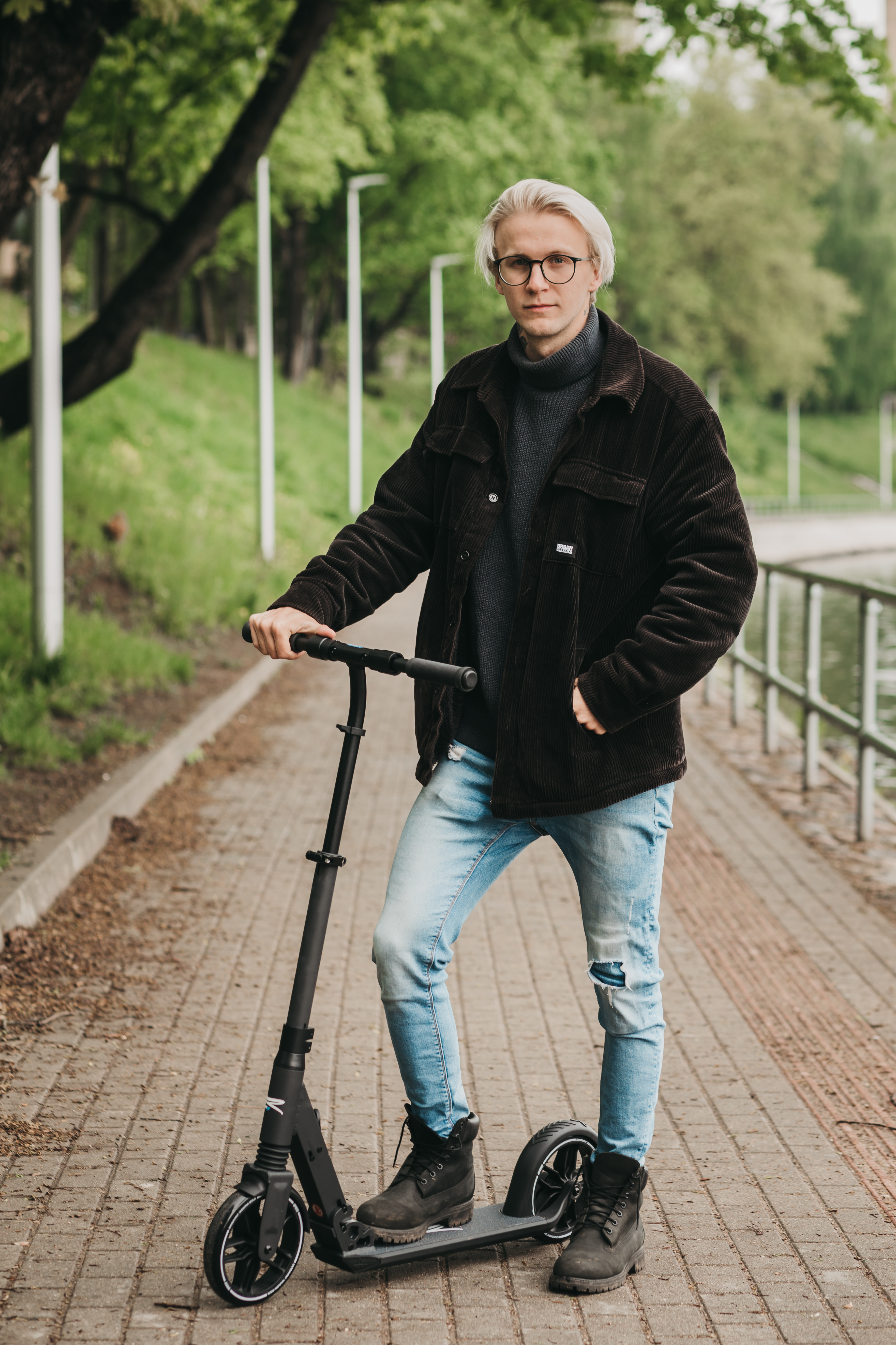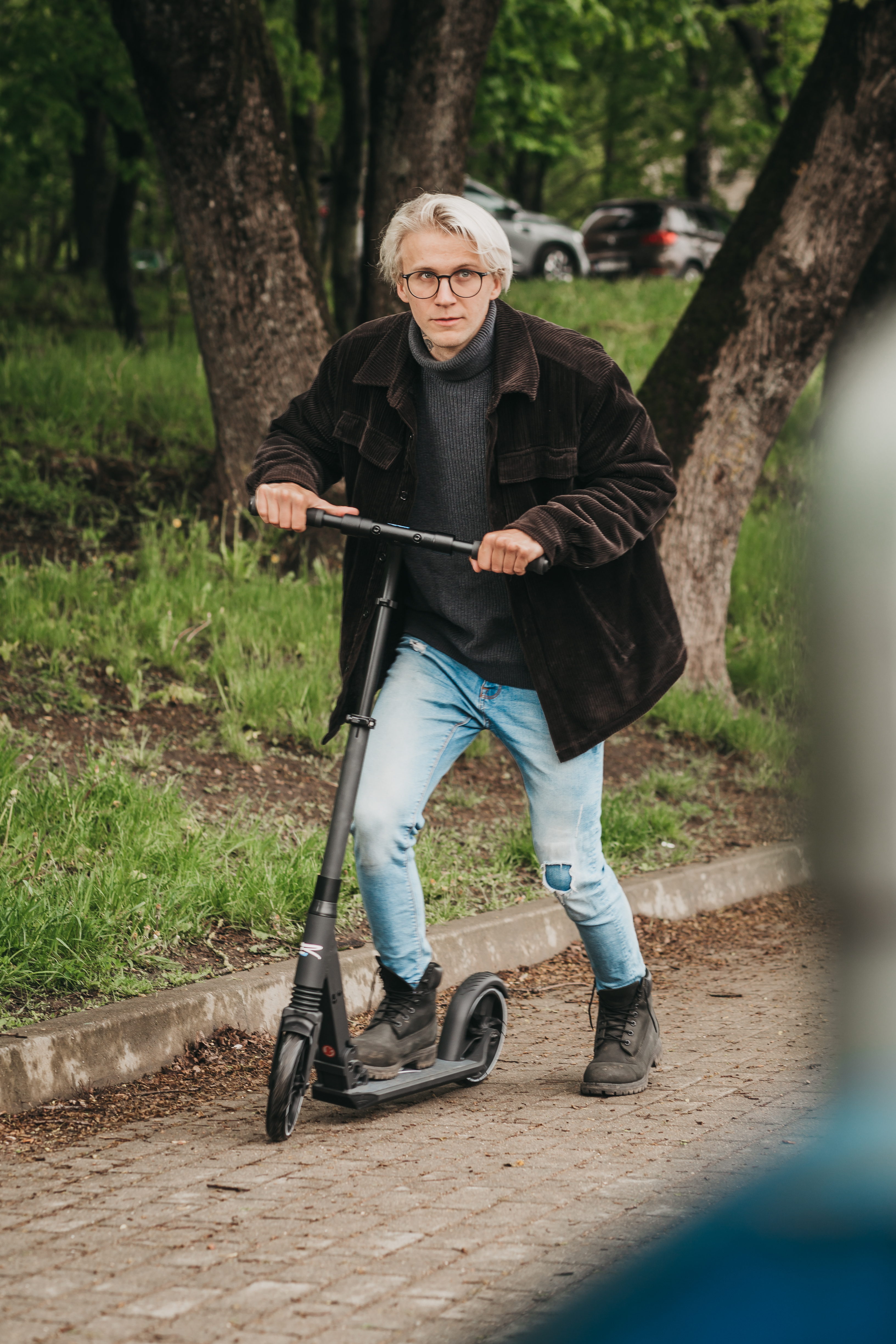 Kierownica została wyposażona w komfortowe gripy z miękkiej gumy z żeberkami zapewniającymi lepszy chwyt. Można je łatwo złożyć w kilka sekund, żeby nie przeszkadzały podczas transportowania. Nisko postawiony podest ułatwia wsiadanie i zsiadanie z pojazdu. Produkt bardzo dobrze sprawdzi się podczas przemieszczania się po ulicach, parkach i skwerach.