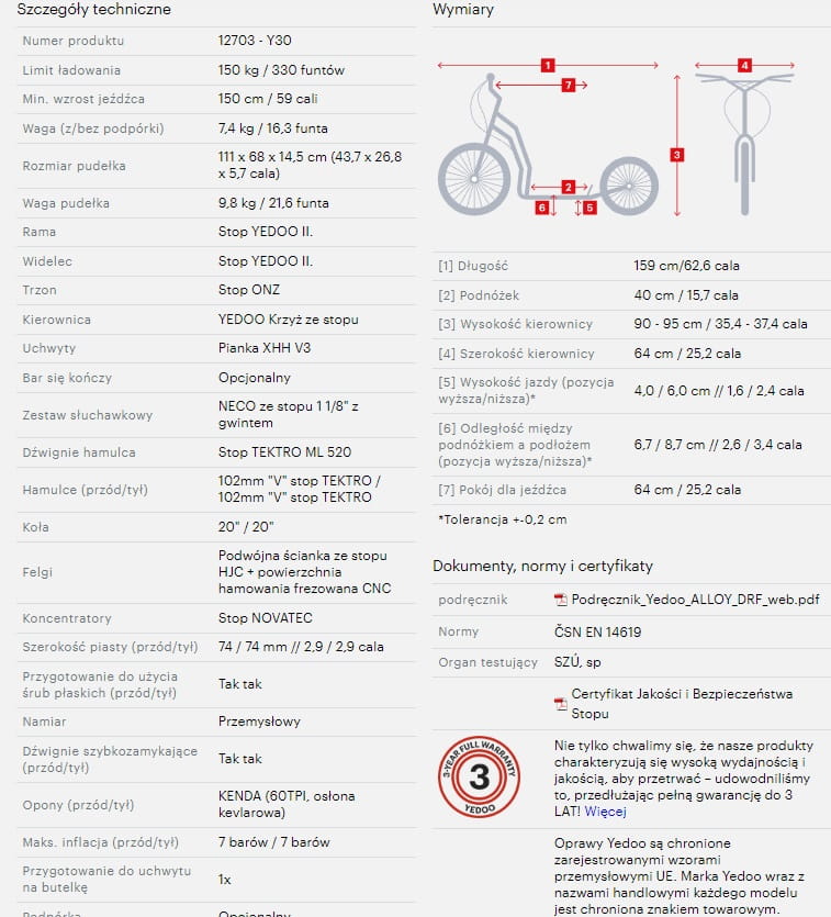 | Max. wysokość hulajnogi | 95 cm |