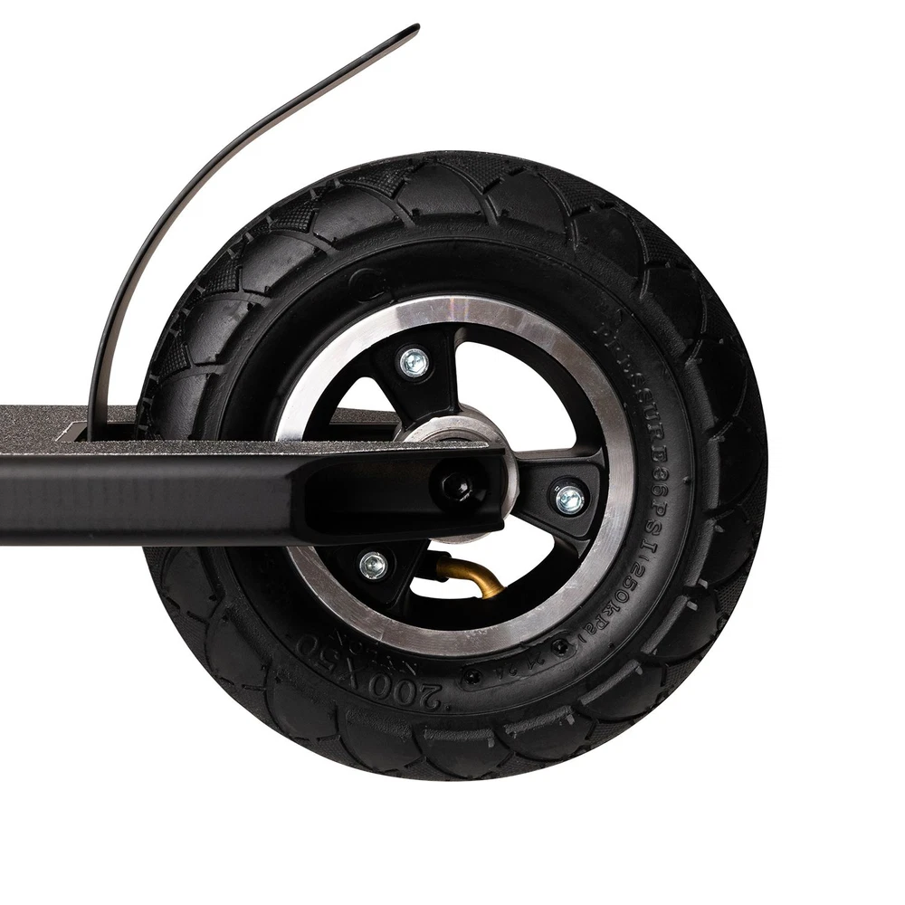 Koła posiadają bieżnik inspirowany rowerami górskimi MTB (7,87 x 1,97 cala) i karbowaną powierzchnię MTB, co zapewnia skuteczną przyczepność na każdym rodzaju terenu. Rdzeń to szprychowa konstrukcja wykonana z aluminium 6061 T6, zapewniająca maksymalną wytrzymałość i trwałość. Opony wypełnione powietrzem gwarantują stabilną jazdę i bezpieczne lądowania, nawet na najtrudniejszych nawierzchniach.