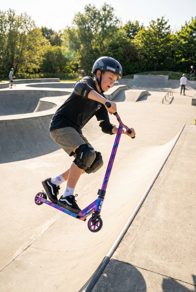 Hulajnoga wyczynowa Surge firmy Crisp przybywa, aby rozjaśnić Twoje dni żywymi kolorami. Pomoże początkującym w nauce i rozwoju oraz osiąganiu nowych umiejętności.