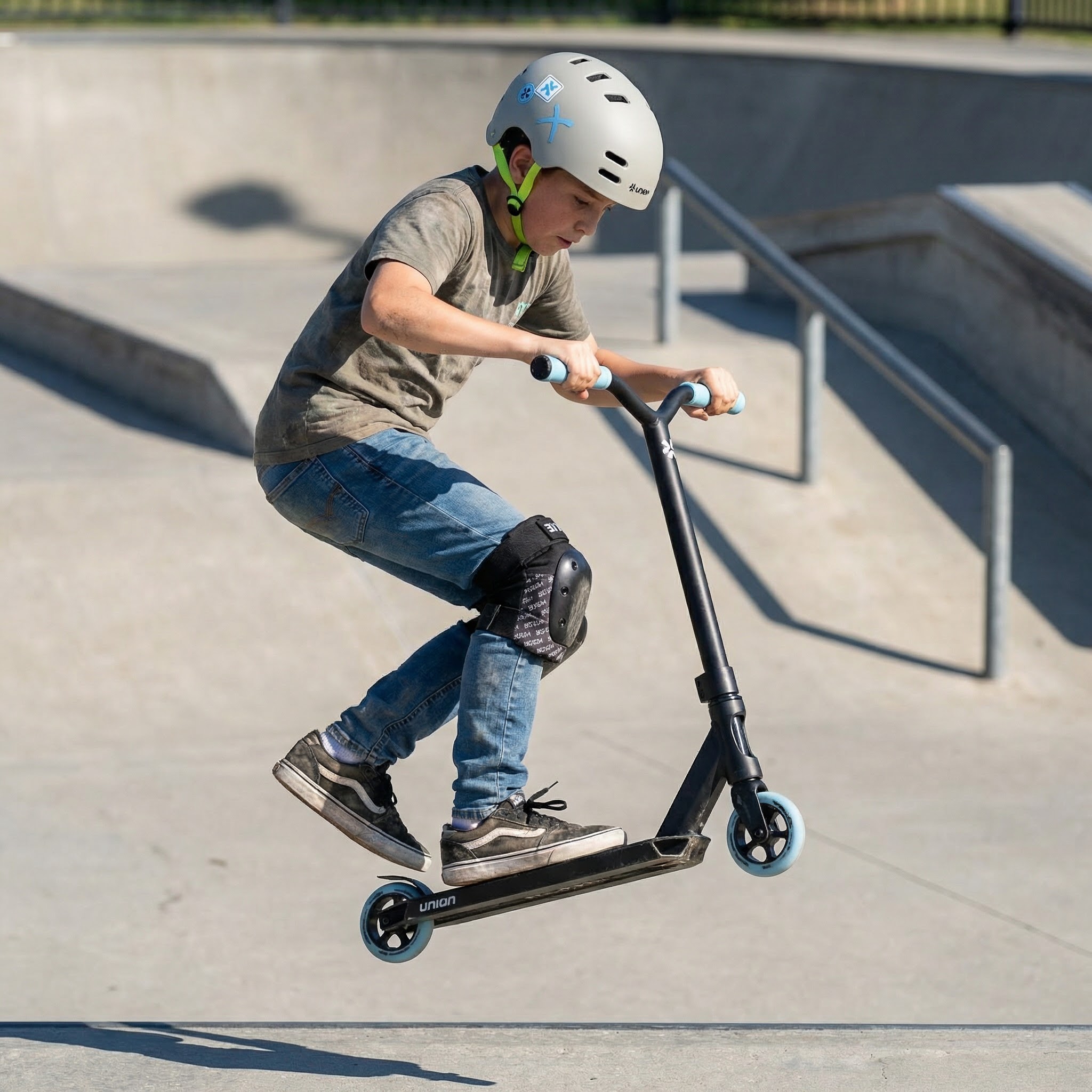 Union Lite scooter to lekka i stylowa hulajnoga z przeznaczeniem skateparkowym i do jazdy miejskiej, stworzona z myślą o młodszych jeźdźcach.