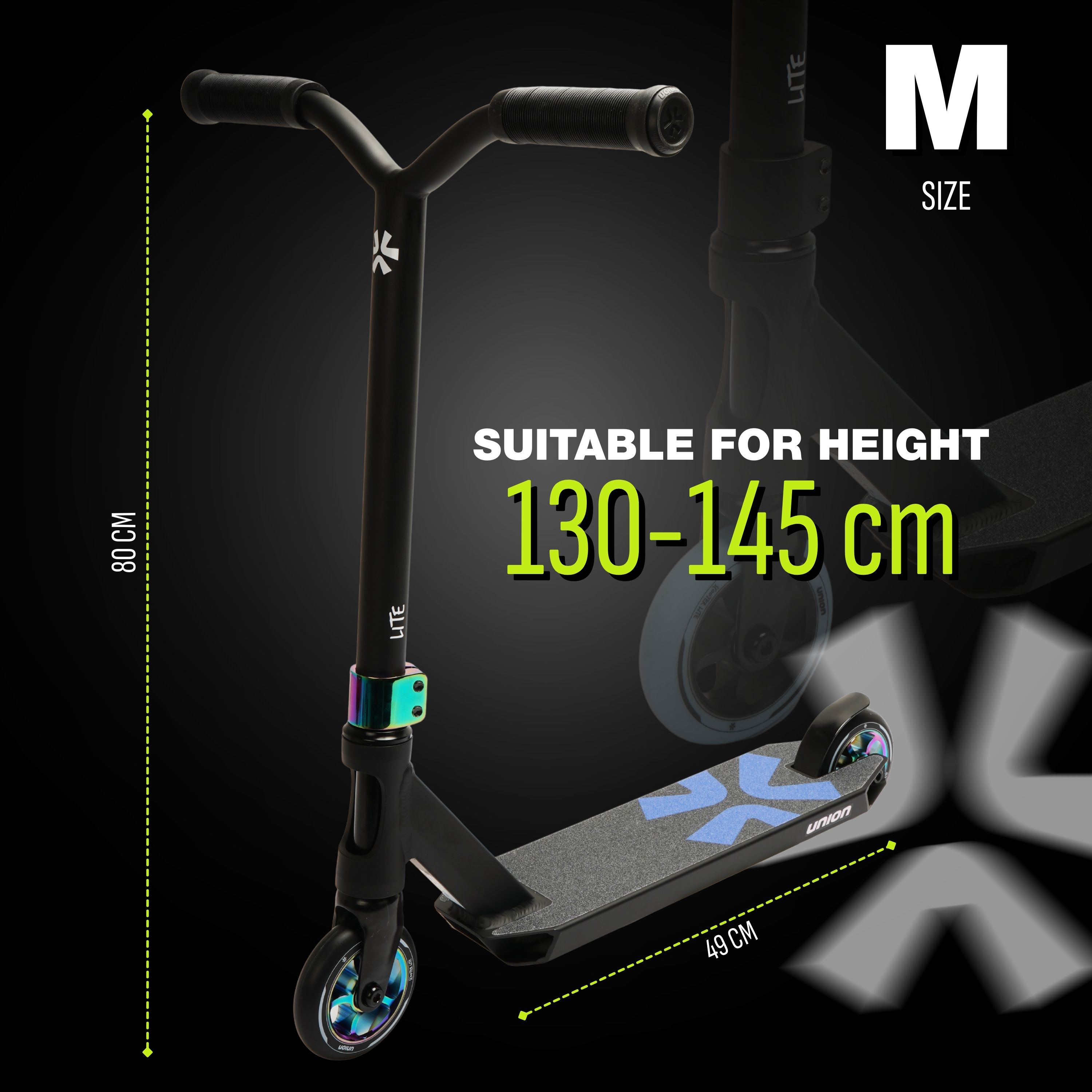 Union Lite scooter to lekka i stylowa hulajnoga z przeznaczeniem skateparkowym i do jazdy miejskiej, stworzona z myślą o młodszych jeźdźcach.