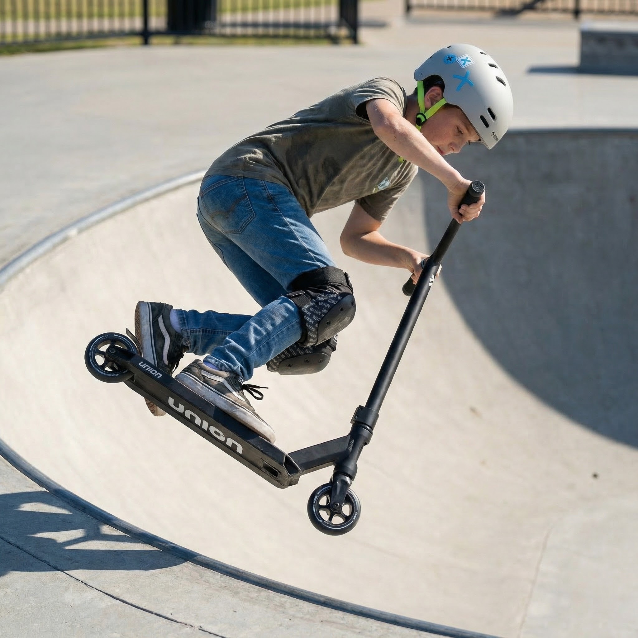 Union Lite scooter to lekka i stylowa hulajnoga z przeznaczeniem skateparkowym i do jazdy miejskiej, stworzona z myślą o młodszych jeźdźcach.