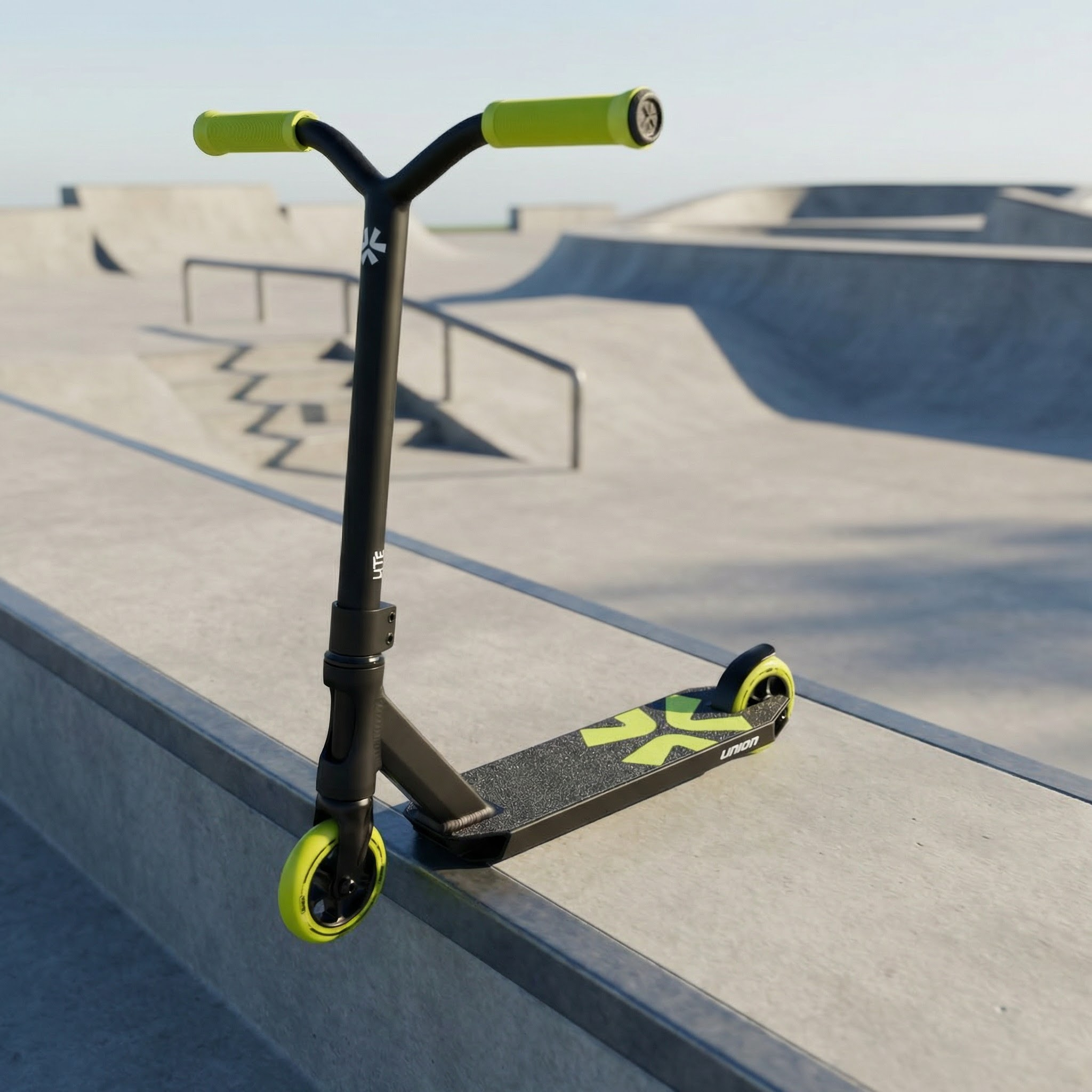 Union Lite scooter to lekka i stylowa hulajnoga z przeznaczeniem skateparkowym i do jazdy miejskiej, stworzona z myślą o młodszych jeźdźcach.