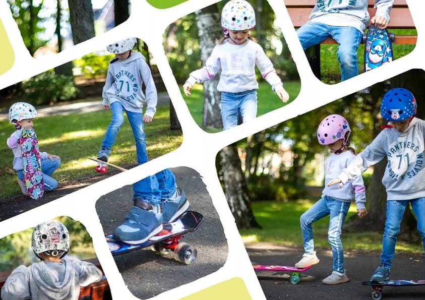 Kask jest przeznaczony dla dzieci jeżdżących na rowerze, rolkach, wrotkach, hulajnodze, deskorolce itp.